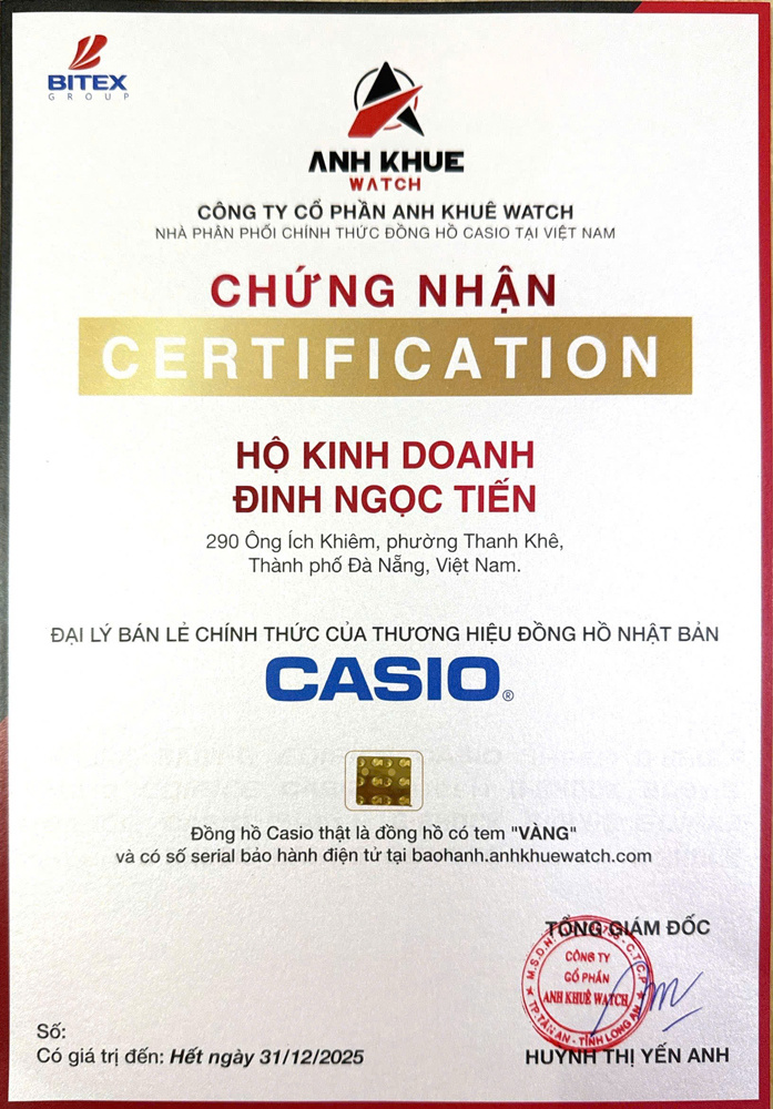 GIẤY CHỨNG NHẬN ĐẠI LÝ ỦY QUYỀN THƯƠNG HIỆU ĐỒNG HỒ CASIO TẠI VIỆT NAM